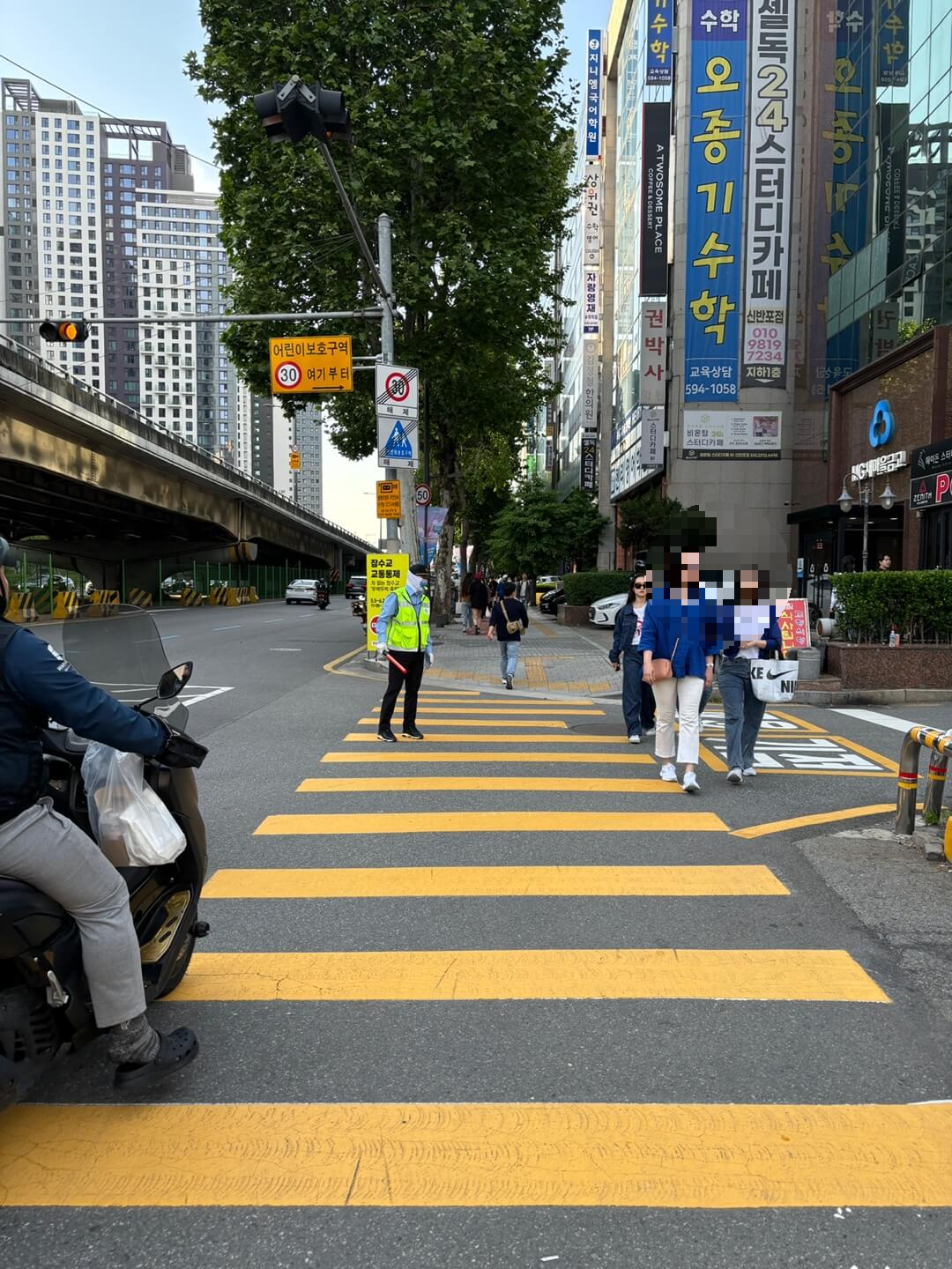 교통을 정리하는 사람들도 있습니다. 일요일에 열리는 행사이기 때문에 사람들이 많습니다.