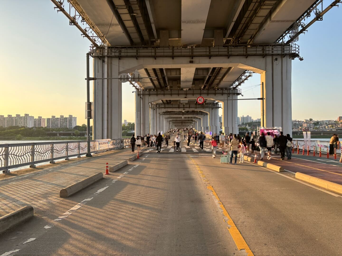 연결통로를 빠져나오면 잠수교가 보입니다. 일요일 사람들이 정말 많습니다.