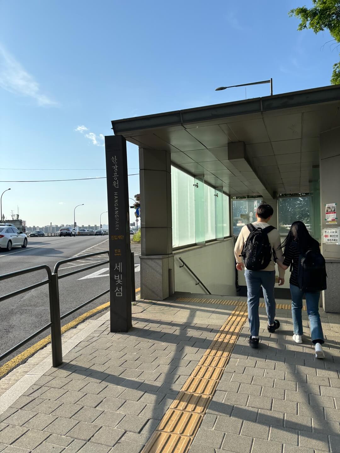 한강공원 세빛섬이라면 표시가 보이면 지하로 내려가면 됩니다. 지하와 한강공원이 연결되어 있습니다.